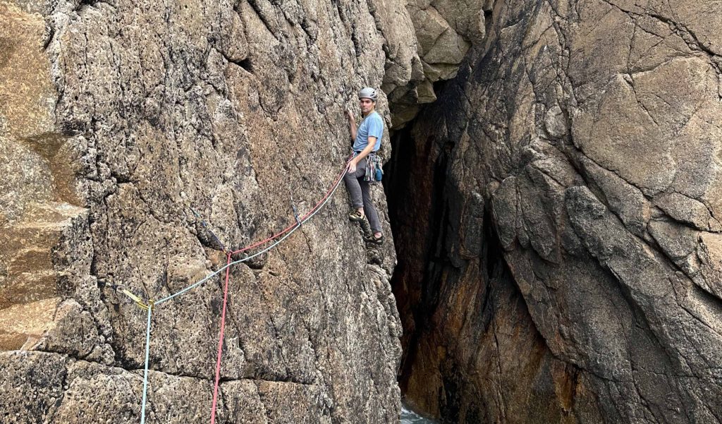 I looked down to see one rope, then two ropes swinging in the breeze, and then I see bunker in the drink getting bashed around by the Atlantic ocean. I was terrified. Following the drama, the climb back out after was well sketchy! We had to go back the next day to retrieve some gear but apart from a few bumps and bruises there was no harm done and hopefully some lessons learnt.
